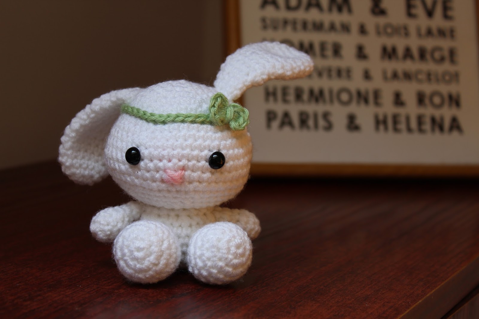 Viszonylag sokat gondolkodtam rajta, mit is készítsek a lánynak, mivel nem igazán ismerem, de végül biztos forrásból értesültem, hogy igazából ő mindent szeret, ami cuki - illetve láttam az instagram oldalán is, hogy szereti a nyuszikat - így a már sokszor elkészített Spring bunnies minta alapján horgoltam neki egyet. Gé mostanság annyira rákattant a horgoltságaimra, hogy igazából mindet meg akarja tartani és hát ezzel sincs másként.